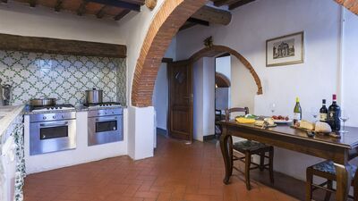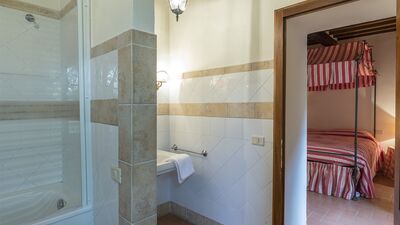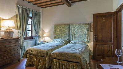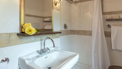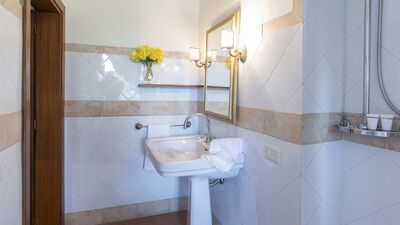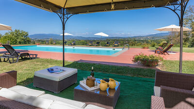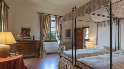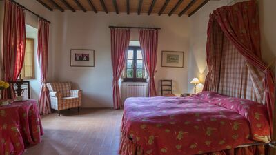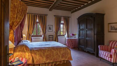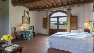 Située dans une position enchanteresse à la périphérie de la ville d'Arezzo et entourée de géométries suggestives de vignes et d'oliviers, cette prestigieuse propriété reflète tout le charme des villas nobles du XVIe siècle. Les chambres spacieuses et élégantes, les chambres raffinées avec salle de bain privée, décorées de tissus raffinés, de lits à baldaquin romantiques et de meubles anciens, le jardin bien entretenu et une immense piscine à usage exclusif font de la Villa Palazzaccio l'environnement idéal pour les réunions de famille ou pour accueillir de grands groupes d'amis qui souhaitent passer un séjour relaxant dans un environnement calme, même si elle est très proche des attractions les plus belles et les plus prestigieuses de cette partie de la Toscane. Le Palazzaccio se trouve à seulement 1,5 km des remparts des Médicis et offre une vue sur le Casentino, le Pratomagno et le Monte della Verna, où Saint François a reçu les stigmates. Nous sommes également à moins de trois kilomètres du centre historique de la ville qui a vu naître de nombreux artistes et qui abrite aujourd'hui des chefs-d'œuvre architecturaux et artistiques de renommée mondiale, mais en peu de temps et avec la complicité de l'Autostrada del Sole à 13 km et de la gare à 5 km, vous pourrez rejoindre Florence, Sienne, Pérouse, Cortone et les belles régions du Chianti et du Casentino. La Villa Palazzaccio fait partie du domaine de San Fabiano, situé à environ 500 m de la résidence, l'une des fermes les plus prestigieuses et les plus grandes de la région, dont les terres cultivées avec des oliviers et des raisins donnent vie à une huile d'olive extra vierge exceptionnelle et au prestigieux nectar à déguster et à acheter directement dans les caves locales. La structure propose une dégustation gratuite de ses vins qui peuvent être achetés sur place. Possibilité d'avoir un chef sur demande pour le petit déjeuner, le déjeuner et le dîner. NB : si vous louez le bien selon cette solution, aucun autre client ne sera présent dans l'ensemble de la structure.