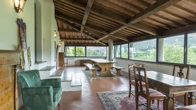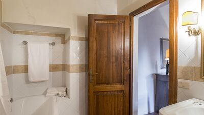 Le Palazzaccio se compose de la villa principale et d'une annexe attenante. VILLA : La villa est construite sur trois étages. L'entrée du rez-de-chaussée mène à la buanderie sur la gauche, tandis que sur la droite, par un couloir avec une salle de bain de service, on accède à un grand salon, donnant complètement sur le jardin grâce aux multiples portes vitrées et organisé avec des sièges et des coins repas ; de là, quelques marches mènent à la cuisine avec cellier et accès direct au porche. En montant au premier étage, par un escalier en pierre placé dans l'entrée, vous trouverez une chambre double avec salle de bains privative avec baignoire et un grand salon avec cheminée menant à une chambre double et à deux lits, toutes deux dotées d'une salle de bains privative avec baignoire. Enfin, le long du couloir, se trouvent trois chambres doubles supplémentaires, dont l'une dispose d'une salle de bains privative avec douche et, enfin, d'une salle de bain avec baignoire. Le dernier étage, accessible en montant le dernier escalier, abrite, outre une véranda panoramique avec table de ping-pong, le deuxième espace nuit, composé de quatre chambres doubles et d'une chambre à lits jumeaux desservies par cinq salles de bains, quatre avec baignoire et une avec douche. Cinq des chambres doubles peuvent être réunies sur demande. ANNEXE : Il est situé à environ 10 m et est réparti sur deux étages qui ne sont pas reliés en interne. Le rez-de-chaussée comprend une chambre double (avec un lit divisible) et une salle de bain avec douche ; le premier étage, accessible par un escalier extérieur situé sur le côté du bâtiment, abrite une chambre double avec salle de bains privative avec douche et un petit salon.