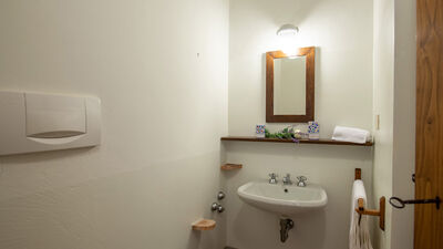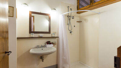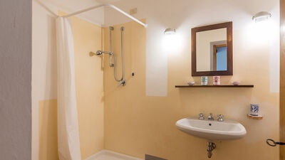 La propriété se compose de deux structures : la villa principale et une annexe. VILLA PRINCIPALE. Il est réparti sur trois étages reliés entre eux à la fois intérieurement et par des escaliers extérieurs. Au rez-de-chaussée se trouve l'espace commun : en entrant par l'entrée principale, vous êtes accueilli par le salon avec un coin salon avec divers espaces de vie confortables, une cheminée, des canapés et une télévision par satellite. Du salon, vous accédez à la cuisine, très équipée et lumineuse avec, à côté, la salle à manger et pour compléter l'étage une salle de bain de service. L'escalier principal mène au premier étage avec salon et cheminée, deux chambres doubles (une avec un lit divisible), l'une avec une salle de bain privée avec baignoire et l'autre avec une salle de bain attenante avec douche. Depuis l'escalier principal, vous accédez également à une kitchenette, un salon, une salle de bain de service et une chambre double, avec lits divisibles, avec une salle de bain privative avec douche. En montant un escalier, vous accédez à deux chambres doubles (une avec lits divisibles), toutes deux dotées d'une salle de bains privative, l'une avec baignoire et l'autre avec douche. Toutes les chambres sont équipées de la climatisation. La maison principale est complétée par une cave servant de hall, avec un toit voûté en maçonnerie, avec un salon, située au sous-sol et accessible par un escalier intérieur ou directement de l'extérieur par des portes vitrées. La salle est équipée d'une cheminée, d'une grande table et de chaises pour 14 personnes. En plus d'être un point de détente et un coin salon, elle peut être utilisée pour des cérémonies, des conférences et des fêtes. ANNEXE : Il est réparti sur un seul étage, est situé à un niveau légèrement inférieur à celui de la maison principale et est accessible en empruntant un chemin dans la pelouse. L'entrée principale mène au salon meublé avec table, chaises, canapé et cheminée. Sur la droite se trouvent une kitchenette, une chambre double avec lits divisibles et une salle de bain attenante avec douche.
