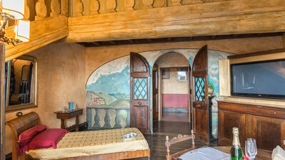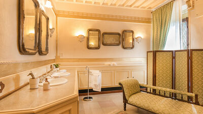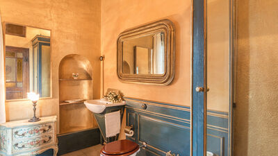 Construite au XVIIIe siècle, à quelques kilomètres du lac Trasimène et de la ville étrusque de Cortone derrière elle, la Villa delle Sophore est située dans ce qui était autrefois une zone frontalière et de contrebande entre le Grand-Duché de Toscane et les États pontificaux. La rénovation, résolument conservatrice, n'a pas empêché la maison d'être chaleureuse, accueillante, absolument confortable et pleinement habitable. Ses fresques, ses voûtes peintes, son majestueux atrium et surtout son mobilier plongent le visiteur dans une atmosphère irréelle et intemporelle. Chaque chambre a été méticuleusement meublée exclusivement avec des meubles anciens, résultat d'une recherche patiente et ciblée par les propriétaires sans sacrifier tout le confort moderne : téléviseurs LCD, chaînes stéréo, Internet. Les clients de la Villa delle Sophora peuvent compter sur la disponibilité des propriétaires qui vivent dans une annexe de la villa avec entrée privée. La position stratégique de la villa permet aux clients d'organiser d'agréables excursions vers le lac Trasimène ou de rejoindre, en quelques kilomètres, les centres historiques de Cortona, Montepulciano, Pienza, Chiusi ainsi que les villes d'art les plus renommées telles que Sienne, Florence, Pérouse et Rome. Dans les caves souterraines de la villa, le propriétaire, un antiquaire passionné, expose UNE COLLECTION PRIVÉE de plus de mille pièces anciennes. Le mobilier et les objets de collection ont été savamment décorés pour créer de véritables antiquités en cours, une excellente destination pour les amateurs de meubles anciens restaurés avec art et pour ceux qui, en tant que connaisseurs, aiment les voir encore patinés. NB : si vous louez le bien selon cette solution, aucun autre client ne sera présent dans l'ensemble de la structure. IL EST INTERDIT DE FUMER À L'INTÉRIEUR DE LA VILLA
