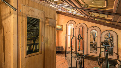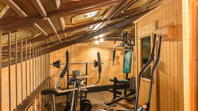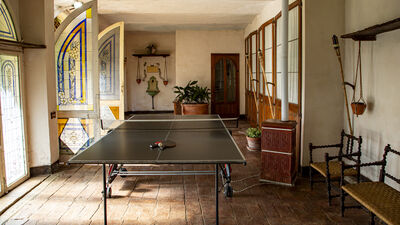 La villa est répartie sur deux étages. La porte d'entrée principale est située au rez-de-chaussée. Cet étage est divisé en un salon composé d'un salon, d'une salle à manger avec une grande cheminée et d'une cuisine équipée (une autre cuisine entièrement équipée se trouve sur la véranda ouverte au bord de la piscine) et d'un espace nuit où se trouvent deux chambres doubles, une salle de bain avec baignoire et une salle de bain avec douche. Un spectaculaire escalier carré en colimaçon mène au premier étage composé de deux chambres doubles avec salle de bains privative avec douche, une avec douche d'hydromassage, une salle de bain avec baignoire et lit double. Le premier étage est complété par deux pièces communicantes utilisées comme chambres individuelles, dont l'une possède une mezzanine avec une salle de lecture et une salle de jeux. Sur la mezzanine, vous trouverez également une salle de sport équipée (sur demande et moyennant un supplément) et un coin détente. Les cheminées de la salle de lecture et de l'une des chambres sont ornementales. VEUILLEZ NE PAS FUMER À L'INTÉRIEUR DE LA VILLA. Air conditionné dans toutes les chambres.